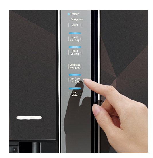 The refrigerator interior is designed elegantly, yet gives a convenience with bright, energy saving LED, elegant bottle and wine shelf, and extra storage space. The Aluminium panel gives a tint of luxury to the bright compartment.
