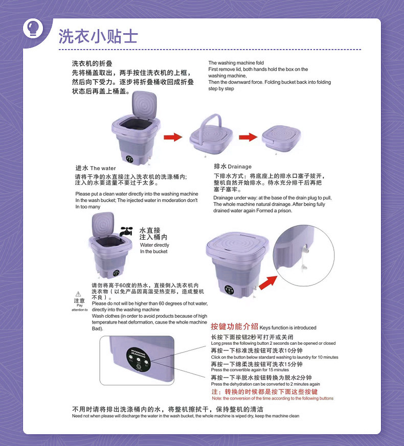 ✅ ভাজ করে রাখা যায় তাই জায়গা নষ্ট করেনা।✅ UV Light এর মাধ্যমে ব্যাকটেরিয়া ধ্বংস করে।✅ যেকোন কাপড় সহজে পরিষ্কার হয় এবং এটি বিদ্যুৎ সাশ্রয়ী।✅ কুইক ড্রাই এর মাধ্যমে সহজেই কাপড় শুকাবে।✅ মাত্র ৩৬ ওয়াটে চলে, তাই সারা মাসে কারেন্ট বিল আসবে মাত্র ৫টাকা